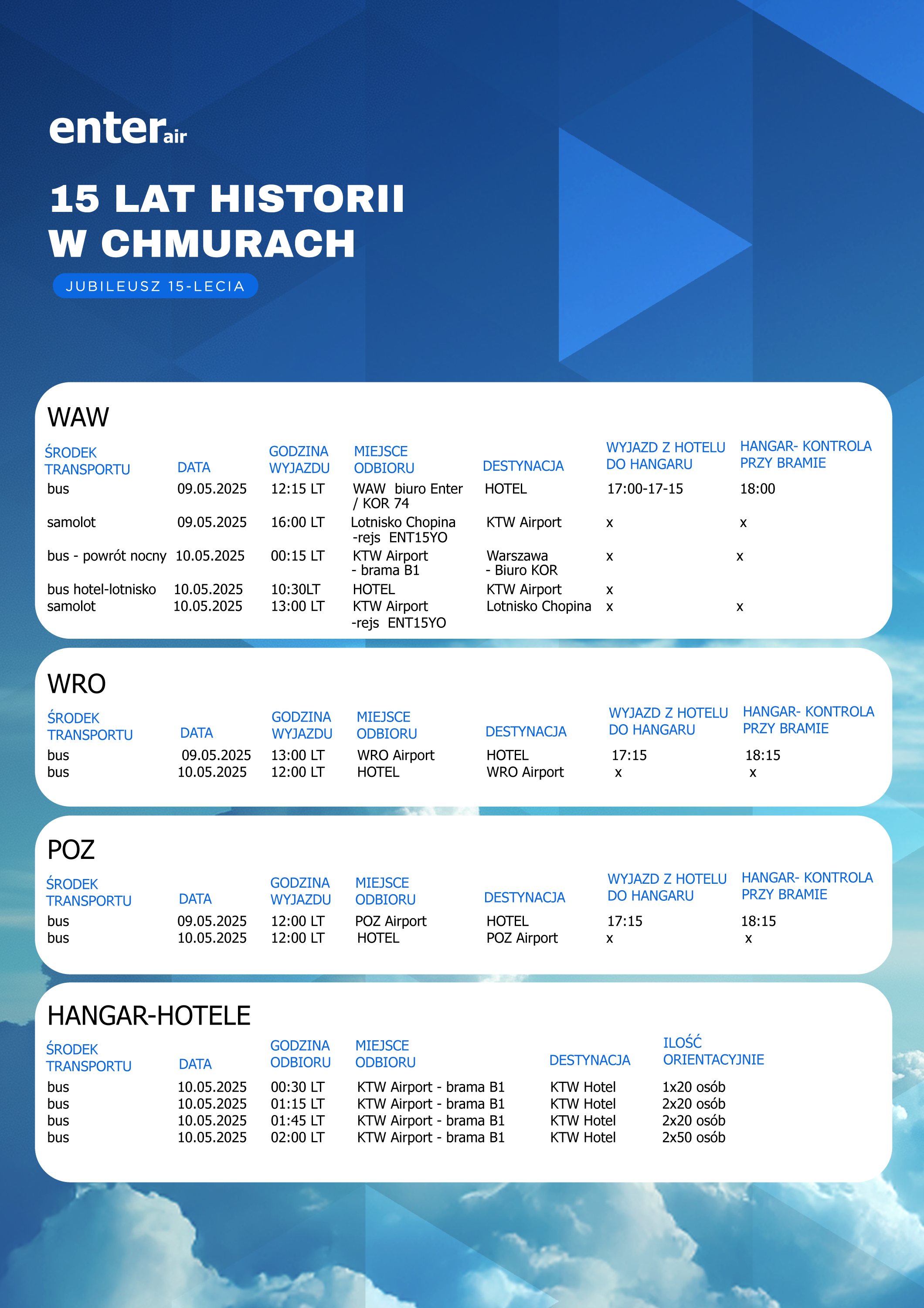 Przez lata wzbijaliście się ponad ziemię, przekraczaliście granice i byliście częścią niezliczonych podróży. Chmury były Waszym codziennym krajobrazem, a niebo – miejscem pracy i pasji. Dziś jednak te chmury nabiorą nowego blasku.